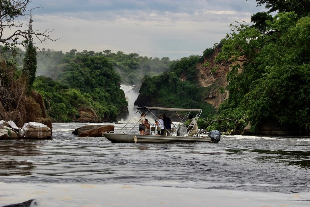 A private boat to the base reveals the full force and scale of the cascade. Here, you don’t just see the falls — you feel them. The boat safari itself is extraordinary. Hippos crowd the water in restless pods. Massive Nile crocodiles line the banks. And if fortune favours you, elephants emerge to drink and bathe at the river’s edge.